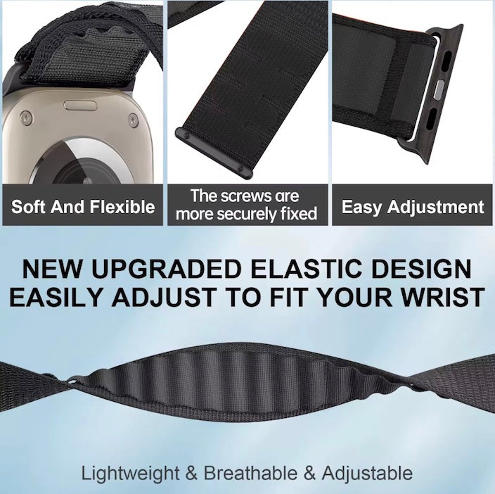 Mit dem velvoo Nylonarmband sitzt deine Apple Watch immer optimal – sportlich für dein Workout, dezent fürs Büro und stilvoll zu jedem Anlass.